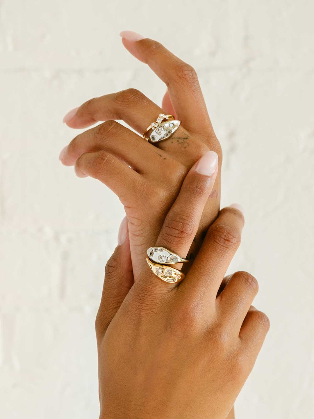 Sculptural silhouettes in gold and silver, finished with our signature touch of shine.
