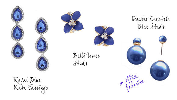 - Royal Blue Kate Earrings : The perfect combination of a classic tear-drop shape with maximum sparkle.