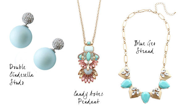 - Blue Geo Strand : This necklace has Robin’s egg blue, gold, and sparkle. Need we say more?