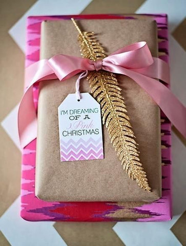 {Splash of Colour} Who says the winter holidays are only about red and green? Be bold and run with a theme that makes you excited! We love this splash of pink and gold against the brown paper wrap for a burst of unexpected colour.