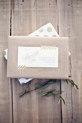 {Postcard/Photo} Use postcards from a recent getaway, or have photos printed to use as a fantastic topper that can be kept long after the gifts have been opened.