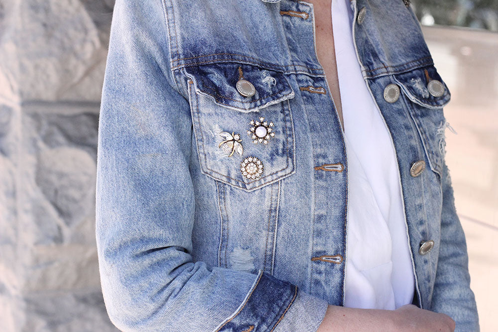 Who doesn’t love a worn-in denim jacket? This classic piece in your wardrobe becomes super stylish when you add a few brooches. Pin them on to mix luxe with casual, and voila! You’re done, baby!