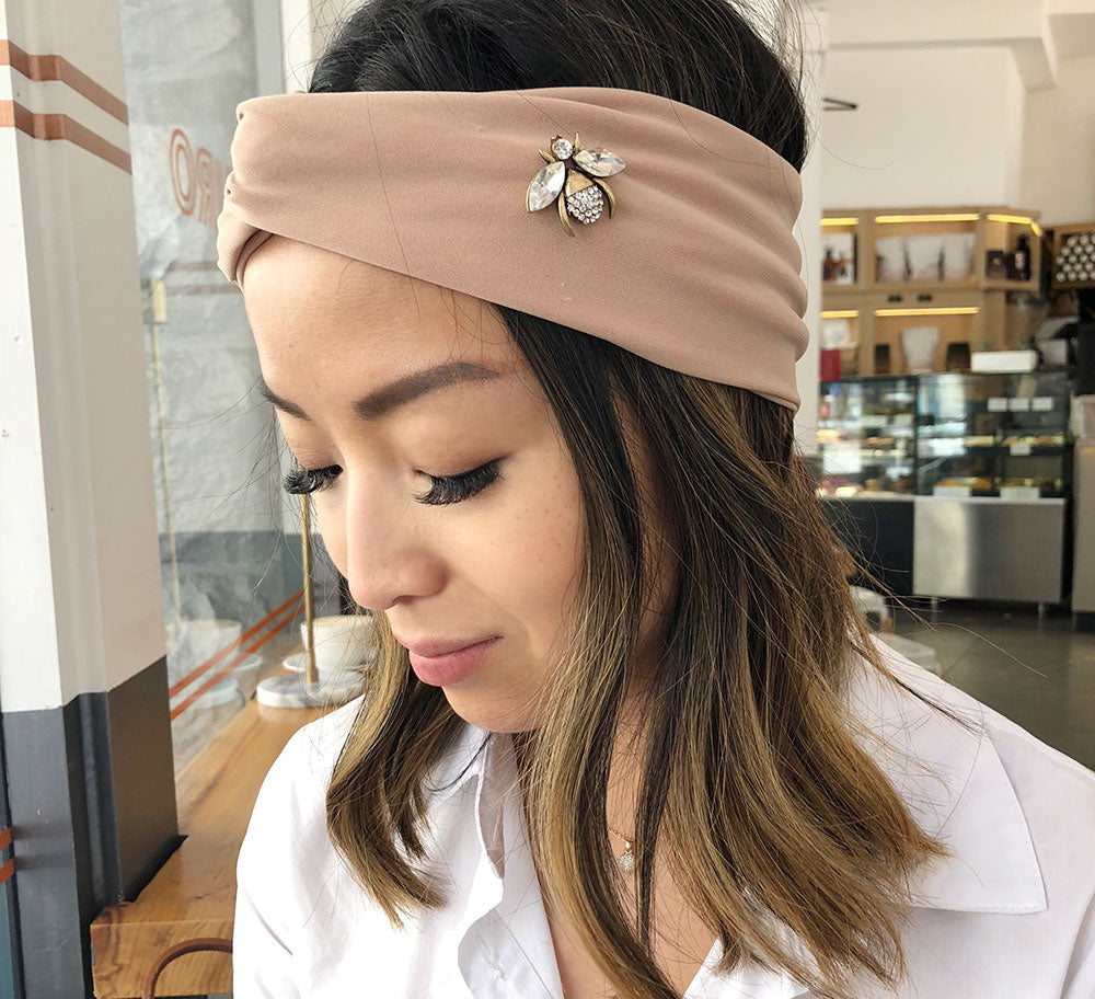 Headbands, headwraps and bandanas are such a fun way to change up your hair, but how about taking them to the next level with a little more flare? Pin a couple of brooches to your headpiece for extra drama. Works best with thicker pieces.