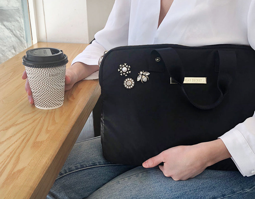 Bored of all your clutches, coin pouches or wallets? Revive and make them new again by adding a pretty brooch. Dress up canvas bags and even leather goods with a touch of charm. Just be mindful of materials so you don't leave unwanted holes!