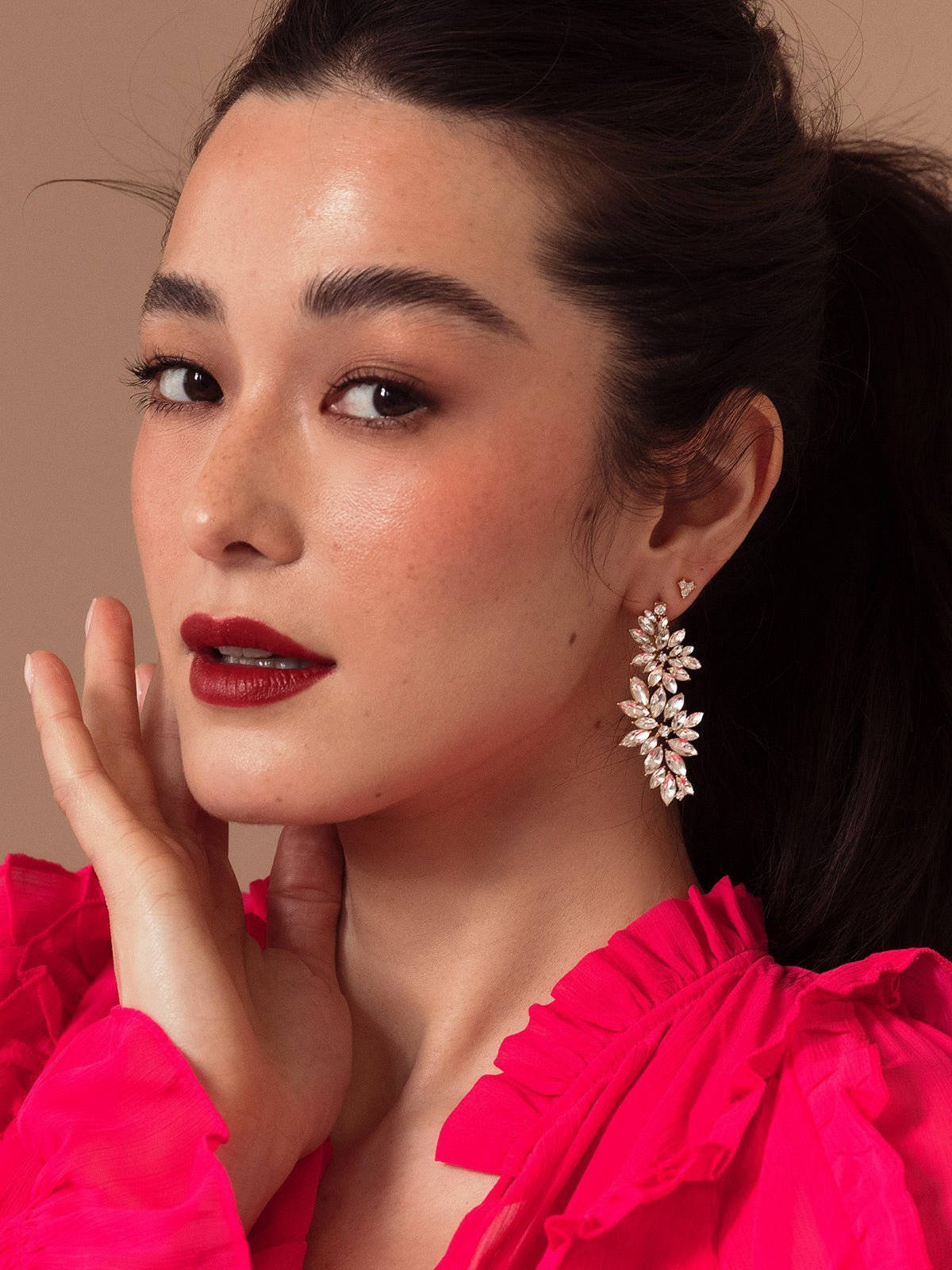 Let your style bloom with the Flora Drops—floral earrings that cascade with charm. With intricate details and marquise-cut gems, they add a refined, feminine touch to any look.