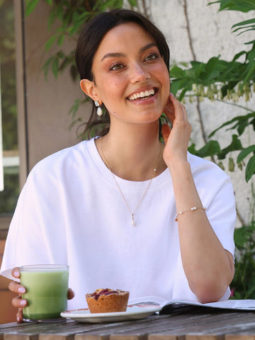 Pearls aren’t just for formal occasions! Pair the Zeta Drops with a plain white-t, a crisp white button-down, or even your favorite denim jacket. Or pair the Anika Ring with your favorite sleeveless sweater for a fun look. This balance of casual and classic creates a fresh, modern aesthetic that’s perfect for brunch or running errands in style.