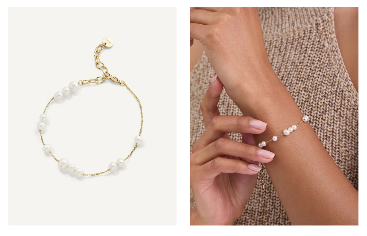 A delicate string of pearls for your wrist—perfect for layering or wearing solo. It’s the kind of piece that pulls every look together.
